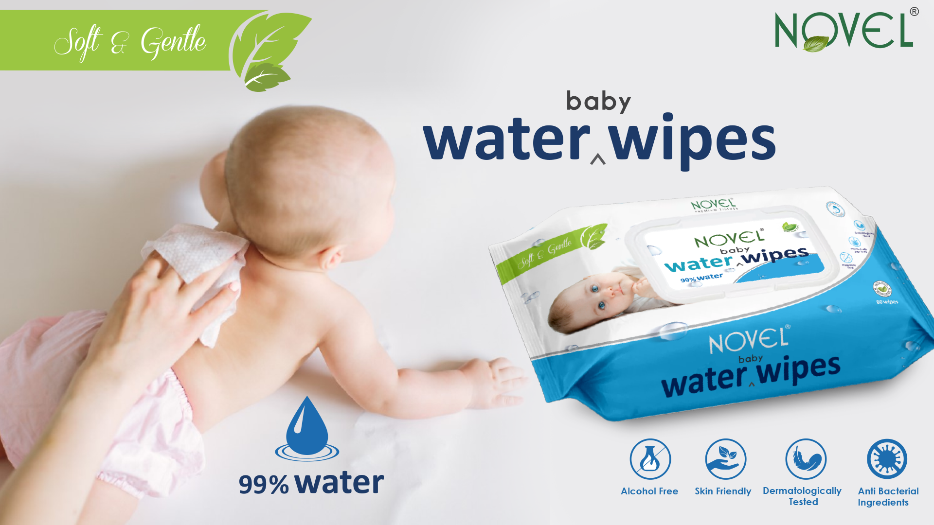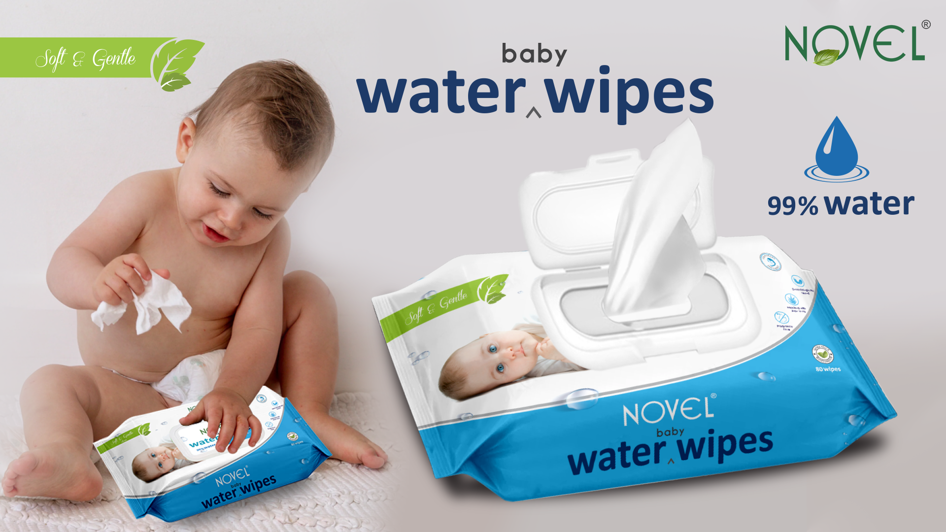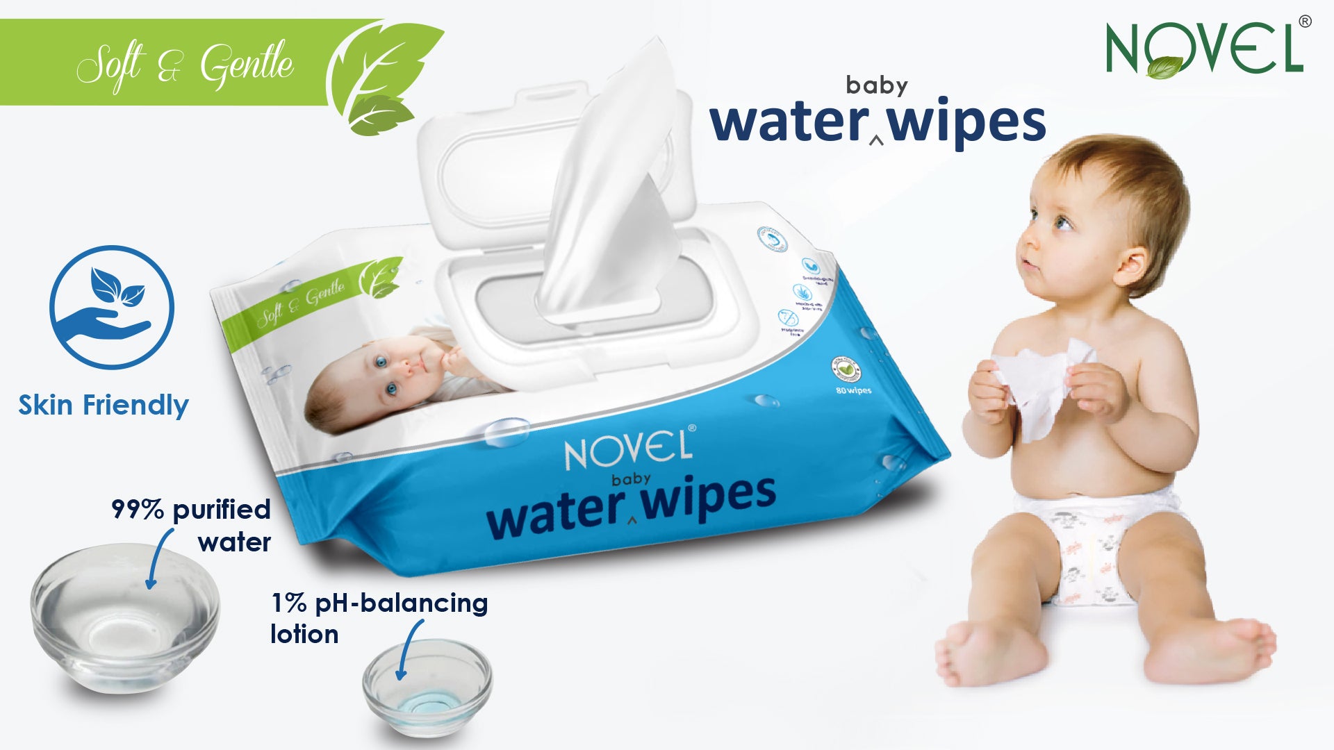 Novel Babio Baby Water Wipes with Lid (80 Wipes, Pack of 3) are made with 99% pure water to provide ultra-gentle and effective cleansing for delicate baby skin. Hypoallergenic and free from alcohol, fragrance, and harsh chemicals, they are safe for new-borns and ideal for daily use. The soft, skin-friendly fabric helps cleanse, hydrate, and soothe without irritation. Designed with a convenient lid to lock in moisture, these wipes are perfect for diaper changes, messy hands, and on-the-go hygiene.