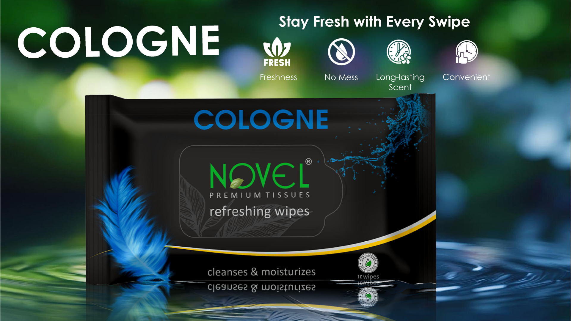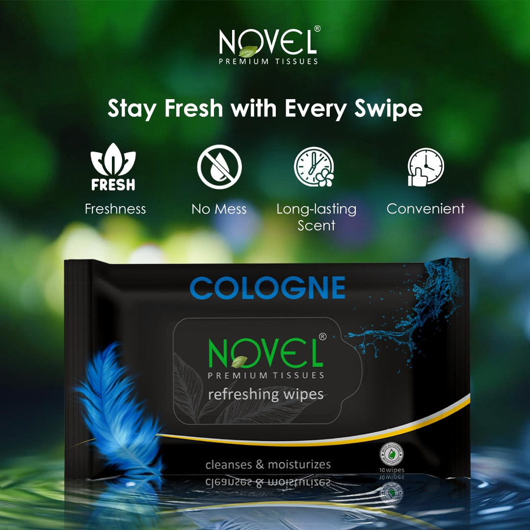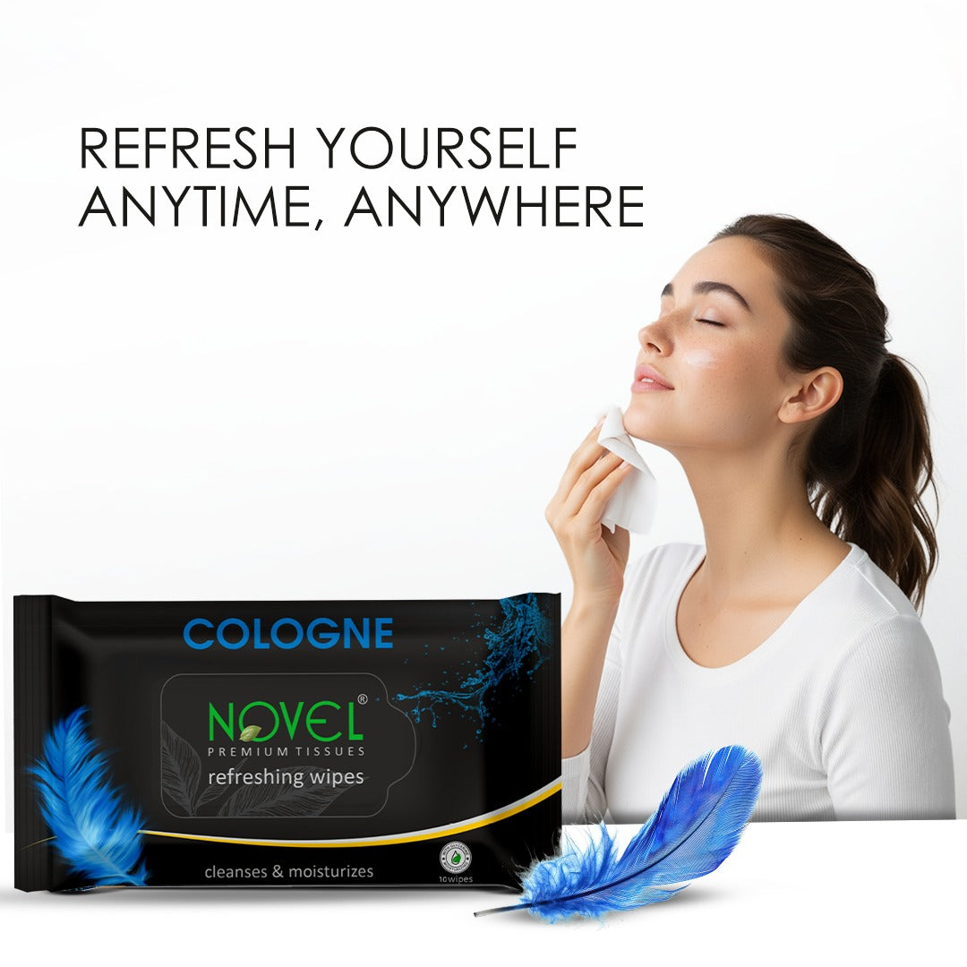 Novel Refreshing Wet Wipes – Alcohol-Free with Aqua Glycerine & Cologne Fragrance (25 Wipes, Pack of 5) are crafted for gentle cleansing and lasting freshness. Enriched with Aqua Glycerine, they help moisturize and hydrate the skin while effectively removing dirt and impurities. The alcohol-free formula makes them safe for everyday use without causing dryness or irritation. Infused with a refreshing cologne fragrance, these soft and skin-friendly wipes leave you feeling clean, fresh, and comfortable—perfect for hands, face, and body anytime, anywhere.